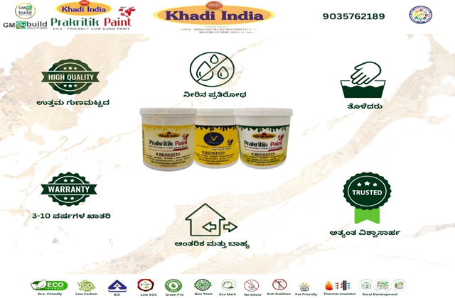 Khadi Prakritik Paint contains negligible Volatile Organic Compounds (VOC). This causes extremely low vaporization of VOCs and prevents irritation to eyes. We are committed to sustainable future and to improving the social, economic and environmental well-being of the community.